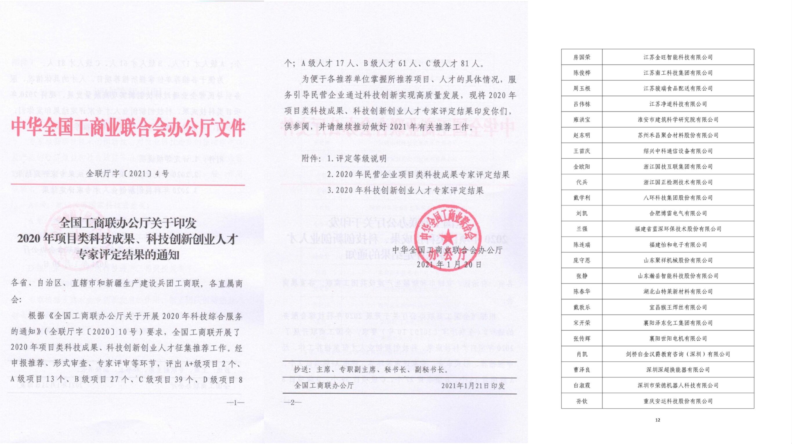 2021年2月,全国工商联2020年科技创新创业人才专家评定结果揭晓。经企业申报、地方推荐、形式审查、专家评审等环节,重庆有10位民营企业家被评为科技创新创业人才,安运科技董事长孙钦成功获得“科技创新创业人才”殊荣。